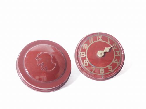 This little beauty is made of Bakelite and is a watch face with a single hand which is set by a spectator to whichever hour is desired and covered with a lid hiding all from view. The magician is able to correctly divine the hour in which the spectator set the hand upon without fail! The covering lid is embellished with the Davenport Insignia and this is not an easy item to find. Includes instructions. Condition very fine.