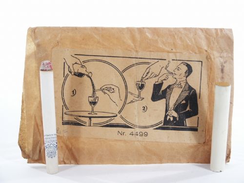 The original envelope gives the depiction by illustration of the effect which shows the cigarette being poured over and then dunked into liquid followed by the immediate smoking by the performer. This is from Janos Bartl in Germany. No instructions but you will understand how with apparatus in hand. Condition fine.
