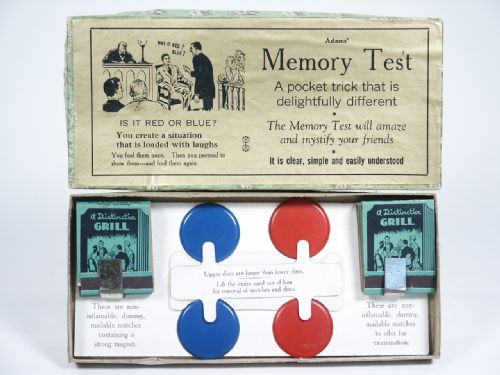 Found in unused condition. Original box with graphics stating that the memory test will amaze and mystify your friends. Includes instructions. Condition long side lip of box minor break, otherwise very fine.