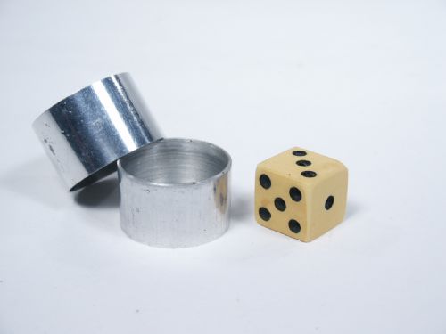 Performer is able to divine the orientation of this die once placed in the round metal box by a spectator without a secret peek. If you have never had one of these to work with it will surprise you as to the method employed. Includes instructions. Condition die has nick in one corner not affecting performance, otherwise fine.