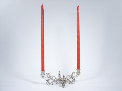 This is an early unit which includes the ornate egg crate fit stand and two vanishing lit candles. Shows some age but still useable. No instructions. Condition good.