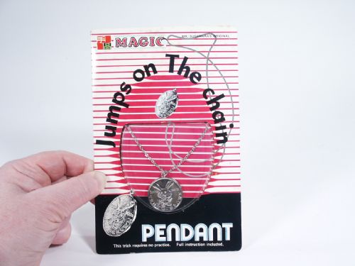 Not an easy Tenyo item to find. Put a pendant into an empty envelope, and then put the end of the chain in it. One, Two, Three. Take out the chain from the envelope. Wonderful! The chain comes up with a pendant! Includes instructions. Condition package has been opened and has light foxing, otherwise very fine. Doesn't look to ever have been used.