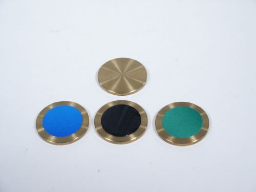 Three brass chips are displayed, each a different color. A forth chip, which is plain, is introduced as a Chameleon chip. This chip takes on the color of the other three chips, one color at a time. Next, the performer offers to turn any one of the four chips into a Chameleon chip. So saying, the chips are turned face down and mixed. One is selected by the spectator. Assuming the selected chip is blue, the other three chips change to match this color! All four chips are left with the spectator for examination. Includes all chips and 5 pages of illustrated instructions. Condition very fine.