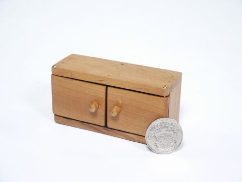Made of wood, measuring 3 3/4" wide, standing 1 7/8" high with two doors with wood knobs at front for the vanish of a coin placed within. Coin picture not supplied. No instructions. Condition very fine.
