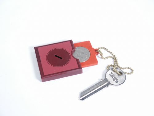 A coin is placed into a small holder at the end of a key chain and then the holder is inserted into a frame and the key is pushed right through the center of the coin! The key is removed and the holder taken from the frame and the coin is shown to be unharmed! Includes illustrated instructions. Condition very fine.