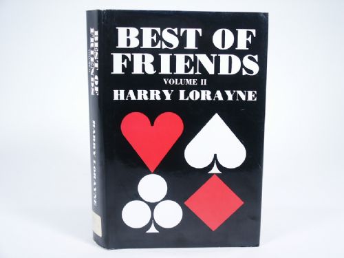 | Best of Friends: Volume 2, Harry Lorayne, 1985, pictorial cloth bound with gilt stamping, 567 pages, illustrated. Contents: Radi-Cull, Case Solved, In Case of Fire, Colorful Spell, A Cardcase Vanish, Point of Contrast, High Speed and more. Condition light foxing page edges, otherwise very fine. | |