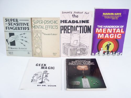 *Super-Psychic Mental Effects by Howard Albright *Super Sensitive Fingertips by Howard Albright *Geek Magic by Dr. Doom *Lamonts Method For Headline Prediction by Lamont Ream *Karl Fulves Self-Working Mental Magic *The Handbook Of Mental Magic by Marvin Kaye