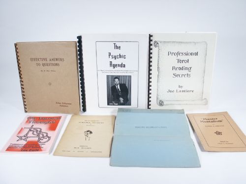 *Master Mentalism by Edwin A. French *Fortune Telling By Cards by Nelson Enterprises *On Second Thought by Lee Earle *The Incorporated Strange Secrets by Annemann *Effective Answers To Questions by R. Alan Nelson, Nelson Enterprises *The Psychic Agenda by John Riggs *Professional Tarot Reading Secrets by Joe Lantiere