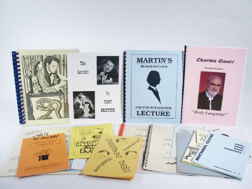 *Hemi-Demi-Semi-Quavers Michael Close Lecture #1 *A Bald Faced Lion Chuck Fayne (Inscribed) *Lecture Notes by Ali Bongo 1986 ITBFA *Al Delage Lecture Notes Number Two *Karrell Fox Lecture Notes *1953 S.A.M. Conference Educational Lecture by J.B. Bobo *Mister Humble And Friends Impromptu Magic by Paul Diamond *Magic Of John Cornelius *French Dressing Magic Duraty *Charles Gauci Body Language *Shakespeare Doth Explain David Groves *Addendum To Shakespeare Doth Explain David Groves *Humble Offerings John West *Martin’s Magical Inventions *Dan Garrett’s Close-Up Connivery #1 *Teasers And Ticklers Dan Garrett *The Lecture Tony Griffith *Wiz Bob Littles Blue Ribbon *K.I.S.S. Magic Vol II Stan Lobenstein