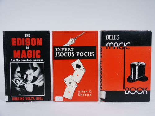 *Bell’s Magic Book, hard bound *Expert Hocus Pocus by Alton C. Sharpe, soft bound *The Edison Of Magic And His Incredible Creations by Burling Volta Hull, soft bound