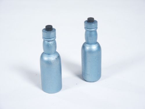 Made in Great Britain. Two wood bottles are made to engage in amusing antics. Bottles are of turned wood and stand 2" high. Includes illustrated instructions. Condition 1st Rate.