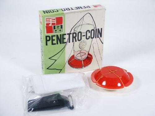 A coin is dropped by a spectator from under a handkerchief into a glass. The coin vanishes from the glass and reappears inside a sealed bag which has been found inside of two sealed containers. Glass and quarter not supplied. Includes illustrated instructions and in original box and never used. Condition very fine.