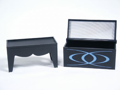 Two solid coins are placed on a stand and covered with a frame, but the audience can plainly see the two coins through the clear cover. Suddenly, the coins start mysteriously moving toward each other, melting into each other, until they become one. The cover magically pops open and in fact, where there were two coins, only one remains. Coins not supplied. Includes illustrated instructions. Condition very fine.