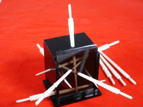 A close up version in miniature of the Illusion Sword Cabinet. The performer's thumb is placed inside the perspex cabinet and swords are inserted. The opening is shown and the thumb has vanished with only the sword blades showing! Includes illustrated instructions. Condition very fine.