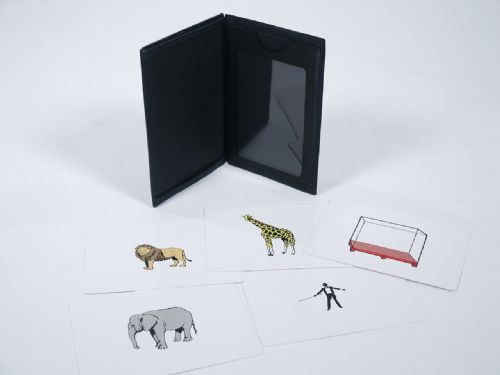 Grand Illusion Up Close! A card showing an empty animal cage is placed in the clear plastic compartment inside a business card wallet. Four other cards are shown: these cards each have a picture printed upon them: a lion, a giraffe, an elephant and a circus ringmaster. A spectator has a free choice of any one of these four cards. Suppose a lion is chosen: the lion card is placed loosely inside the wallet, which is closed and opened. Instantly, the lion vanishes from the card and appears inside the cage on the card imprisoned in the plastic window! Instead of using the supplied cards, you can use Wild Wallet to magically change a $1.00 bill to a $100.00 bill! Wild Wallet is perfect for an instant substitution: your business card and a spectator’s business card magically change places in a flash: a perfect way to hand out your business card and get a prospective client’s card at the same time. Just when you thought there was nothing new in magic, along comes Wild Wallet, a complete fooler and totally self-working1 Includes illustrated instructions. Condition very fine.