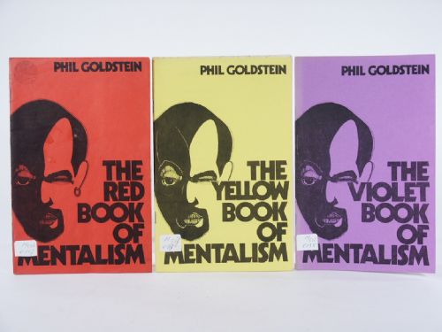 All 3 by Phil Goldstein. The Red Book Of Mentalism, soft cover, 20 pages. The Yellow Book Of Mentalism, soft cover, 24 pages. The Violet Book Of Mentalism, soft cover, 16 pages. Condition private collection identifier label, light soil to cover of The Red Book Of Mentalism, otherwise very fine.