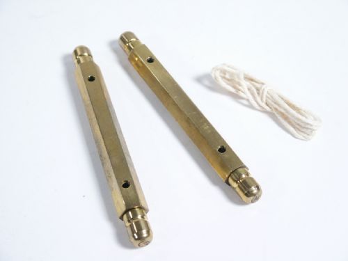From Viking Haenchen, 1991 and quality made in brass. A close up version of the classic Devils Pillars where cords are seen running through and one selected by spectator and cut only to be restored and seen to be so by pulling it back and forth through the sticks. The routine is more than this and the nice thing is this is so portable for a vest pocket since the sticks are only 3 3/4" in length. Includes 2 pages of illustrated instructions. Condition very fine, unused.