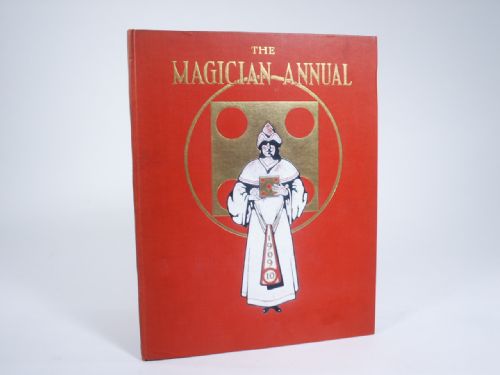 1909-1910, Will Goldston, London. Pictorial cloth bound publishers color and gilt stamping and wonderful pictorial image, 100 pages having wonderful illustrations and photos of magicians, nearly 300. Some items within *Ring Revolver by Conradi *Improved Method for Loading a Hat *A Living Bird Produced from a Jug previously filled with Confetti *The Improved Money Table The Shower of Gold and so much more to inform and entertain. Another difficult to find Goldston volume. Condition Onion skin over title page still present, front flyleaf along with title page to page 2 inclusive separate with hinge starting, otherwise a very fine copy of this elusive volume.