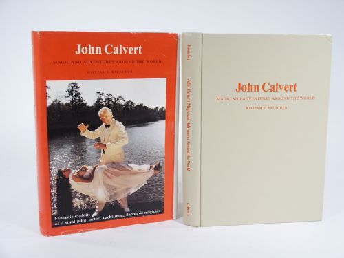 Magic and Adventures Around the World by William Rauscher. Fantastic exploits of a stunt pilot, actor, yachtsman, daredevil, magician. 1987, Numbered 1st Edition, hard bound, numbers 305 pages with index. Many photo illustrations throughout this most interesting book charting the fantastic exploits of the amazing John Calvert, a most interesting gentleman of magic. Condition light foxing top page edges, otherwise fine.