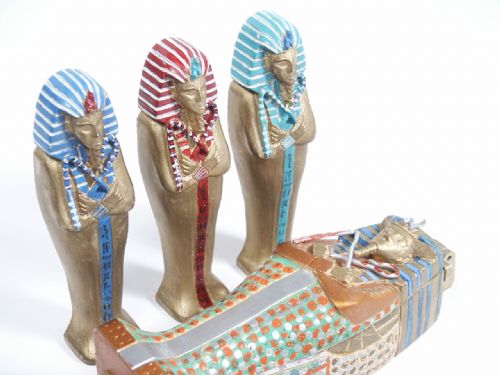 One of the Mummies is selected by a spectator and placed in the Sarcophagus with lid covering over. The two remaining mummies are hidden all the while the performer is either out of the room or with back turned. Without touching the Sarcophagus in any way the performer is able to correctly divine which mummy lays within. This is all handmade by the late Herbert Martin Paufler and not an easy item to find. This is not a weighted method and no electronics in play. Method will be given to winning bidder. Condition beautiful and the most elaborate I have ever with seen with regard to design, First Rate and Hallmarked.