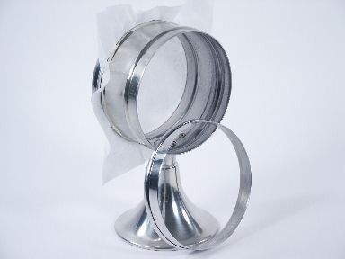 A 4 1/2 inch metal cylinder that is 2 1/2 inches deep is shown empty prior to the placement of tissue paper and metal bands to form a drum. The drum is placed on a metal base and the tissue broken and reaching within the magician produces a string of silks (not supplied)! Includes illustrated instructions.