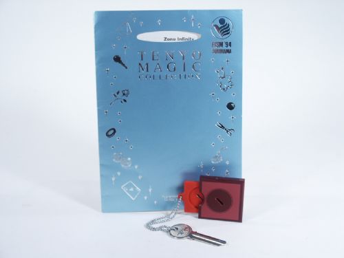 From 1994 and specially made to coincide with the FISM Convention in Yokohama, Japan. Made for use with a 500 yen coin which by the instructions was to be provided by user. (This coin is close to 26.5 mm in size which is larger than a quarter that is 24 mm in size.) A coin is placed into a small holder at the end of a key chain and then the holder is inserted into a frame and the key is pushed right through the center of the coin! The key is removed and the holder taken from the frame and the coin is shown to be unharmed! Includes specially prepared in Japanese language along with illustrations showing 500 yen coin and includes the English language instructions as well for English speaking attendees of the convention. Condition very fine.