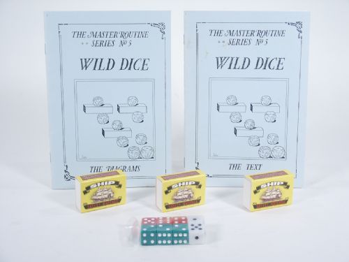 An easy to do routine which is full of visual surprised and which ends with a double climax. Wild Dice begins as a kind of walnut shell and pea trick using three matchbox drawers and a white dice. Then it progresses to a kind of cups and balls effect in which the dice vanishes, jumps and penetrates the matchbox drawers. The smash finish comes with the production of six further colored dice from under the drawers! No sleight of hand required. Includes 2 booklets: The Diagrams 10 page booklet of illustrations and The Text 14 page booklet explaining how to perform. Condition