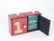 Made of wood with metal piano hinges and measures 5 1/2" wide x 3 1/4" high x 1 5/8" deep. This has a double door feature for peek prior to vanish on left side and the shell is of metal as shown on the right side. Maker unknown. Numbers on front doors are of tape and overall good condition.