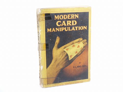 Modern Card Manipulation by C. Lang Neil. Publisher C. Arthur Pearson Ltd., London. 1924, boards, 120 pages plus ads for Gamages, Hamley's Conjuring Tricks and other books, with upwards of 100 illustrations with many being photo illustrations. Chapters on: *Principles Of Natural Magic *Manner And Gesture *The Conjurer's Clothes *The Wand *The Table *Sleights Necessary In Card Conjuring *Simple Card Tricks *Advanced Card Tricks *Some Easy Card Tricks *Tricks With Specially Prepared Cards *Tricks Requiring Special Apparatus *Tricks Performed With The Aid Of Card Boxes. Condition tape on backstrip and covers, a bit shaken, otherwise good.
