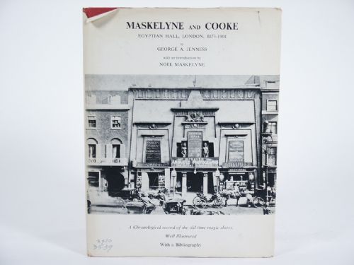 | Maskelyne and Cooke, Egyptian Hall, London 1873-1904 by George A. Jenness with an introduction by Noel Maskelyne. A Chronological record of the old time magic shows, well illustrated with a Bibliography. 1967, Limited Numbered Edition of 500 copies, copy number 363, cloth bound, gilt stamping, 93 pages with Bibliography, photo illustrations. Contents: *Egyptian Hall, Piccadilly, London *Looking Back *Psycho *Zoe, Fanfare and Labial *Piccadilly Ghosts *The Lady Vanishes *David Devant *Animated Photographs *Herr Valadon and Martin Chapender *Addendum *Bibliographical References *Index. Includes many photos from this time period. A very interesting read, especially for those interested in the history of magic. Condition light foxing top page edges, otherwise very fine. | |