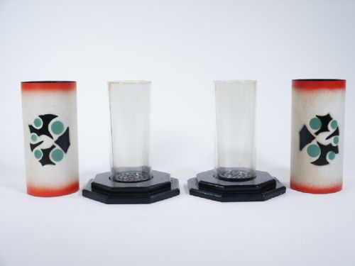 Two tall glasses, each on a thin wooden coaster, and two metal cylinders are displayed. Each glass is full of water and both cylinders are shown empty. The glass on the left is covered with an empty cylinder and a large live goldfish appears in it! Then the fish is magically passed from glass to glass as many times as desired. Fish then appear in both glasses, and finally disappear completely. The covers are again shown empty. The trick is self contained, it's in the outfit itself. It can be worked close up and surrounded. The fish are always in water. No mirrors or the like used. Really baffling beyond words. Each coaster with base stand stands 6 3/4" high made of wood, metal and glass. This is a very difficult Grant item to find and one to be desired for the Collector of Grant Magic. Includes instructions. Condition very fine.
