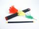 A semi transparent net tube measuring 11 1/4" in length is shown and three different color silks are knotted and pushed in with wand. In full view at all time through the tube the silks change into a three color flower growth! Includes illustrated instructions and from Tricks in Japan. Condition very fine.